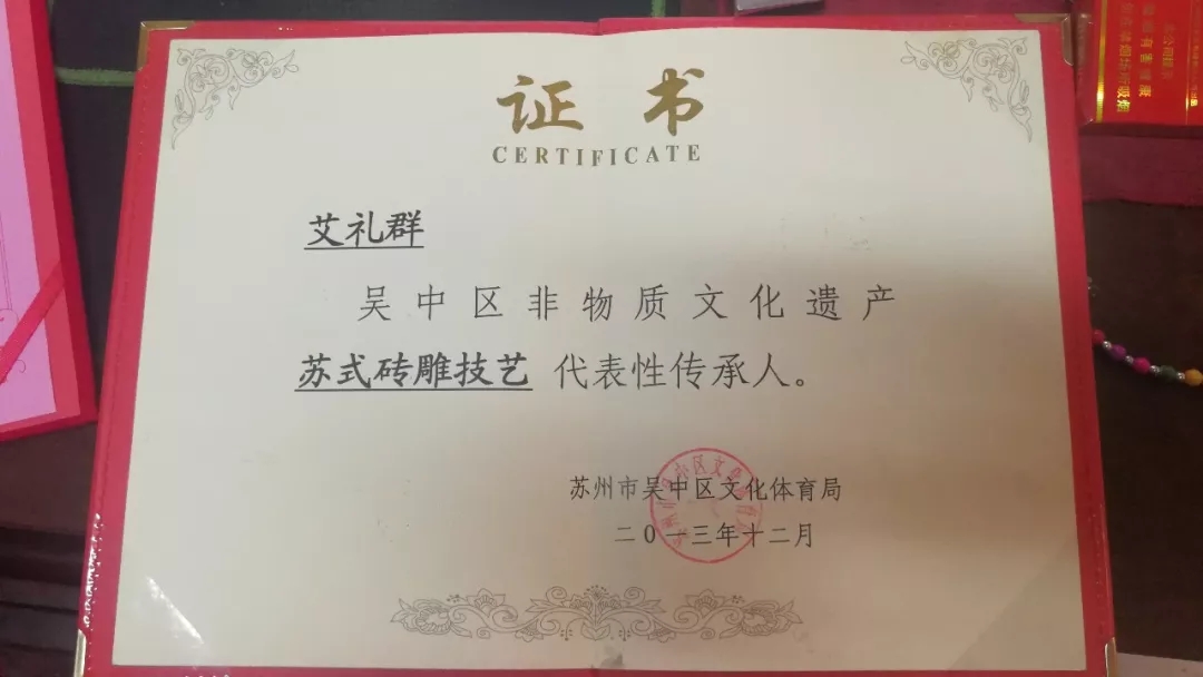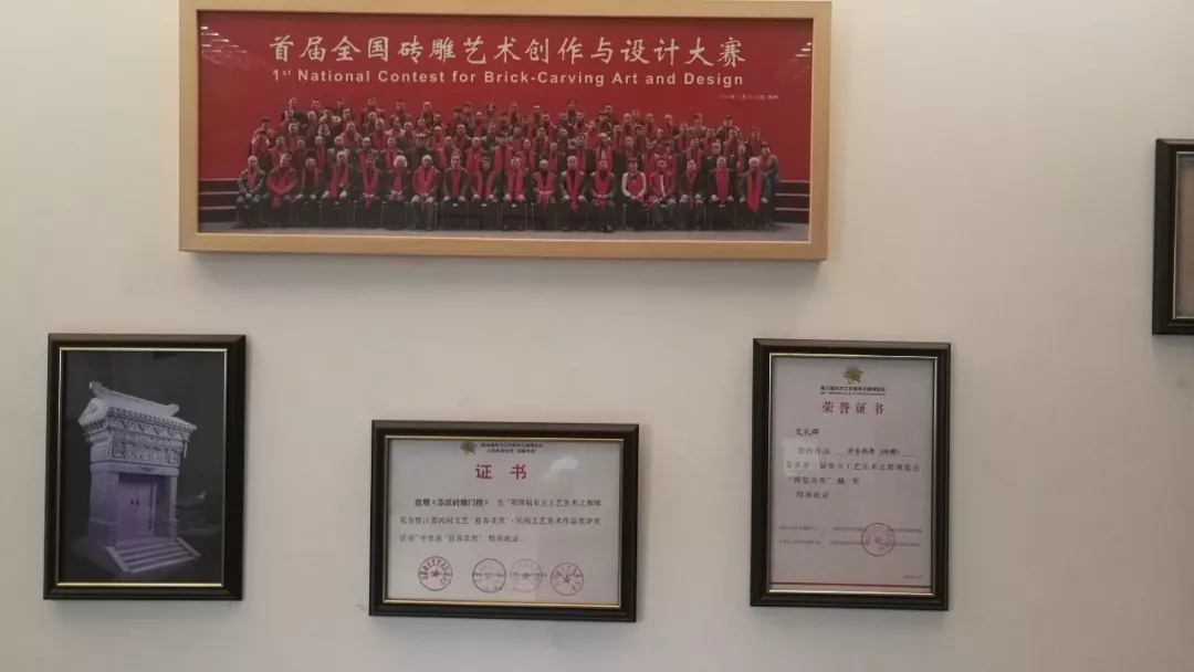 全國十大磚雕大工匠名師——艾禮群,蘇式磚雕藝術(shù)非遺代表性傳承人,中國工藝美術(shù)大師,蘇州農(nóng)業(yè)大學(xué)園林系磚雕客座教授。從事磚雕創(chuàng)作17年來,不斷創(chuàng)出新的奇跡。他曾經(jīng)為上海云林寺、句容茅山風(fēng)景區(qū)、湖北赤壁景區(qū)等名勝古跡與各地的賓館別墅雕刻出一件件典雅精美的照壁、背景墻等磚雕作品。